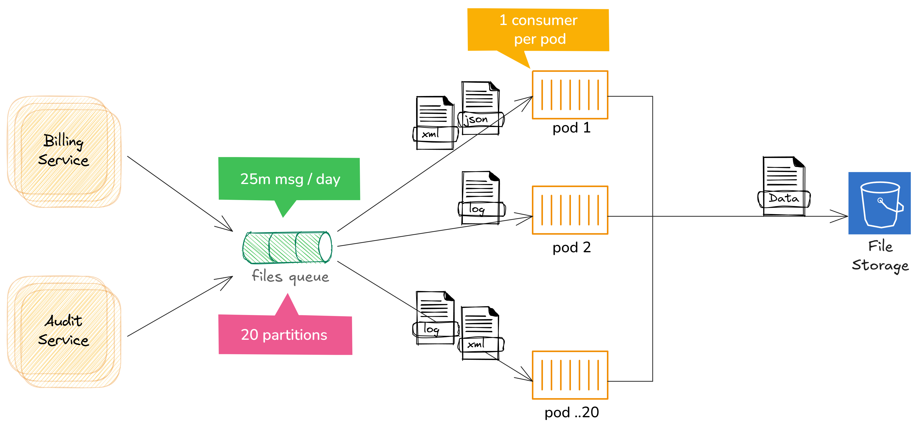 We ran one consumer per pod and deployed 20 pods. Each consumer reads a message and uploads the file to Google Cloud Storage. The throughput remained the same, but the system became simpler. The design choice is clearer to everyone involved. That clarity matters to me.