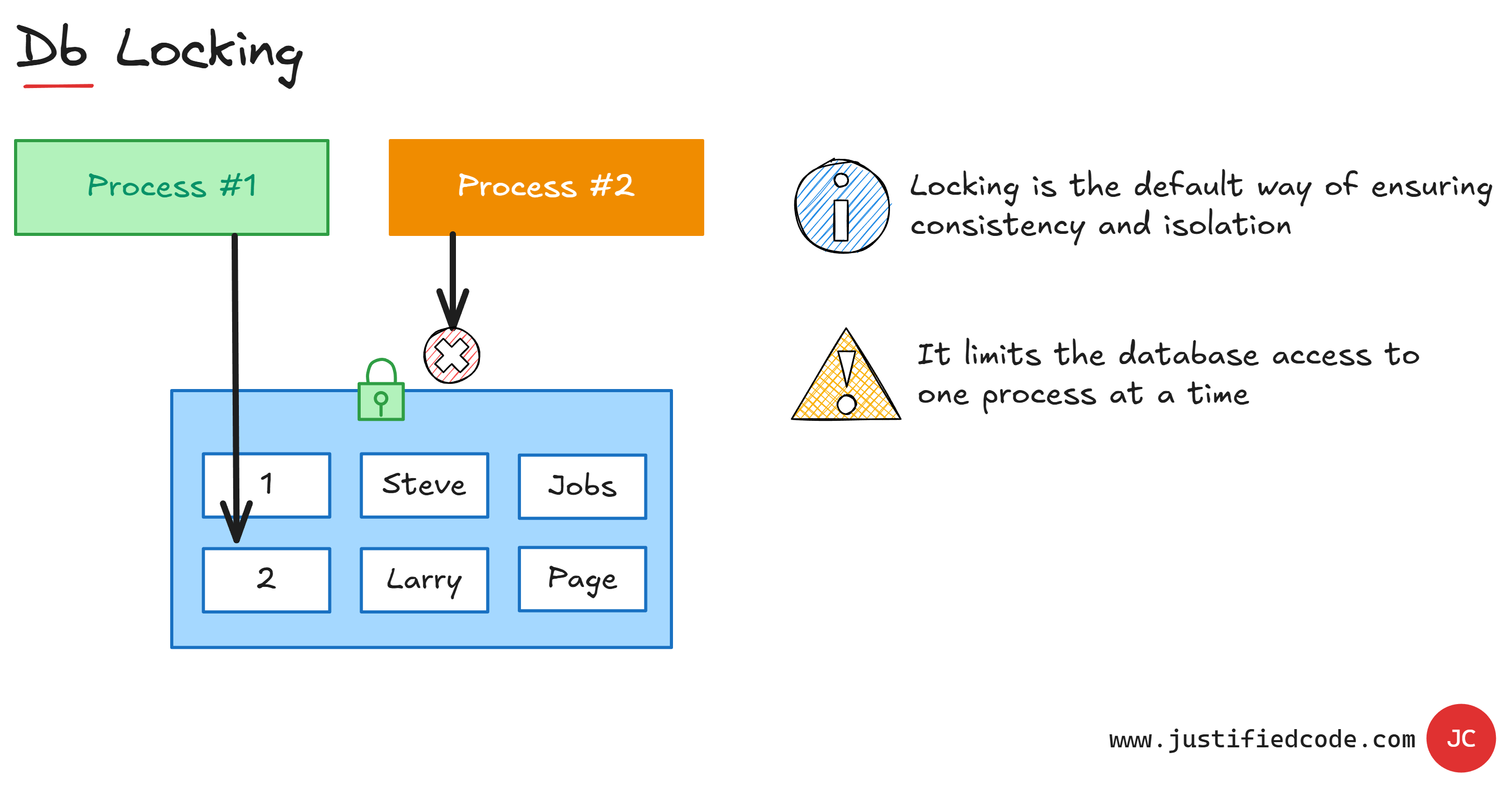 As you see, the process #1 that changes the data acquires a lock on the data that blocks other processes from changing the data until the previous process has finished.