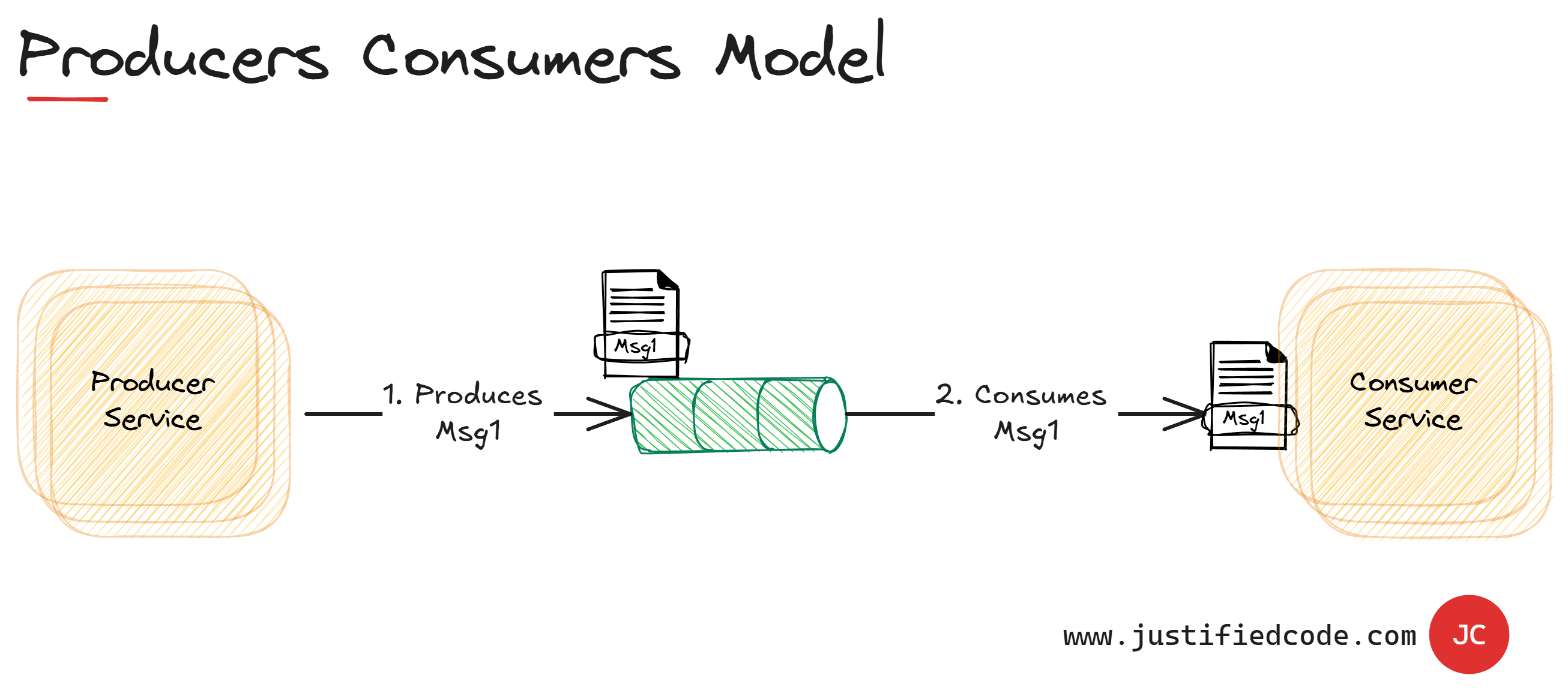 This way of handling messages decouples the producer (Application) from the consumer (Email Service). The producer and the consumer of the message do not need to interact with the message queue at the same time.