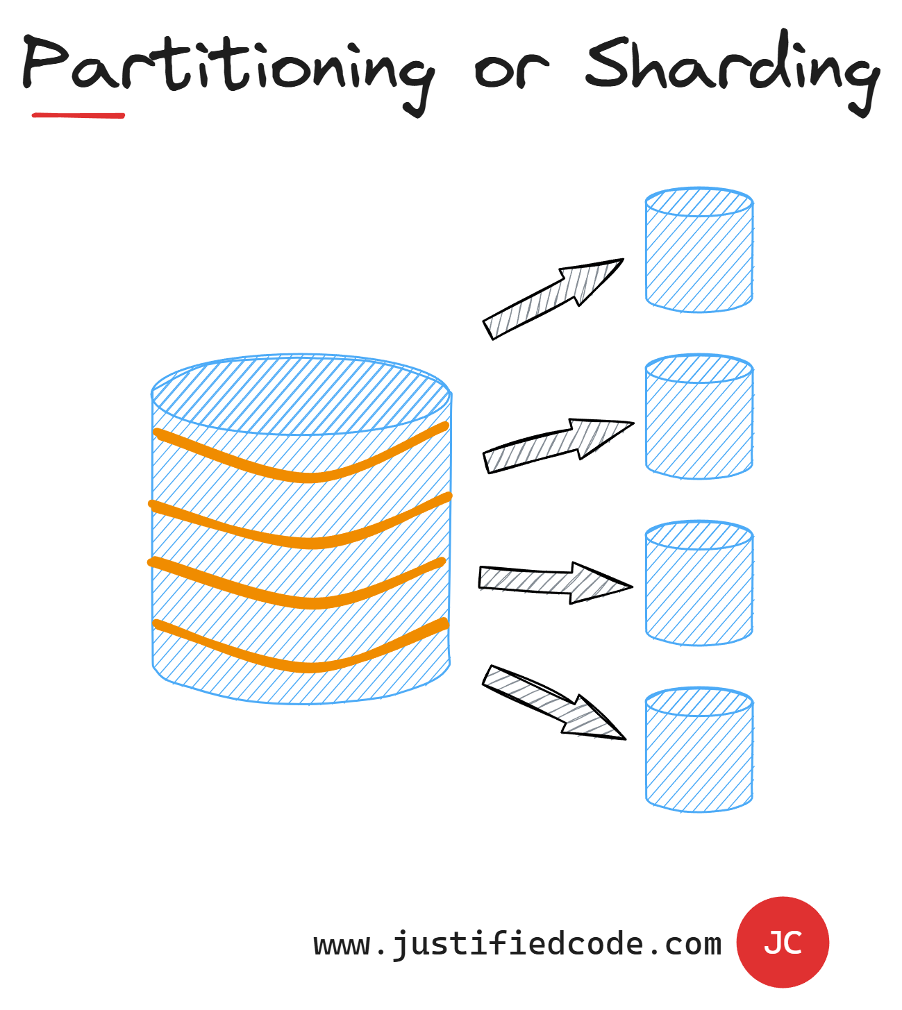 In this case we can use the database replicas to read the data while we direct the write operations to the master database. We still have the same database schema for both reads and writes, but they are not locked as the databases are different.