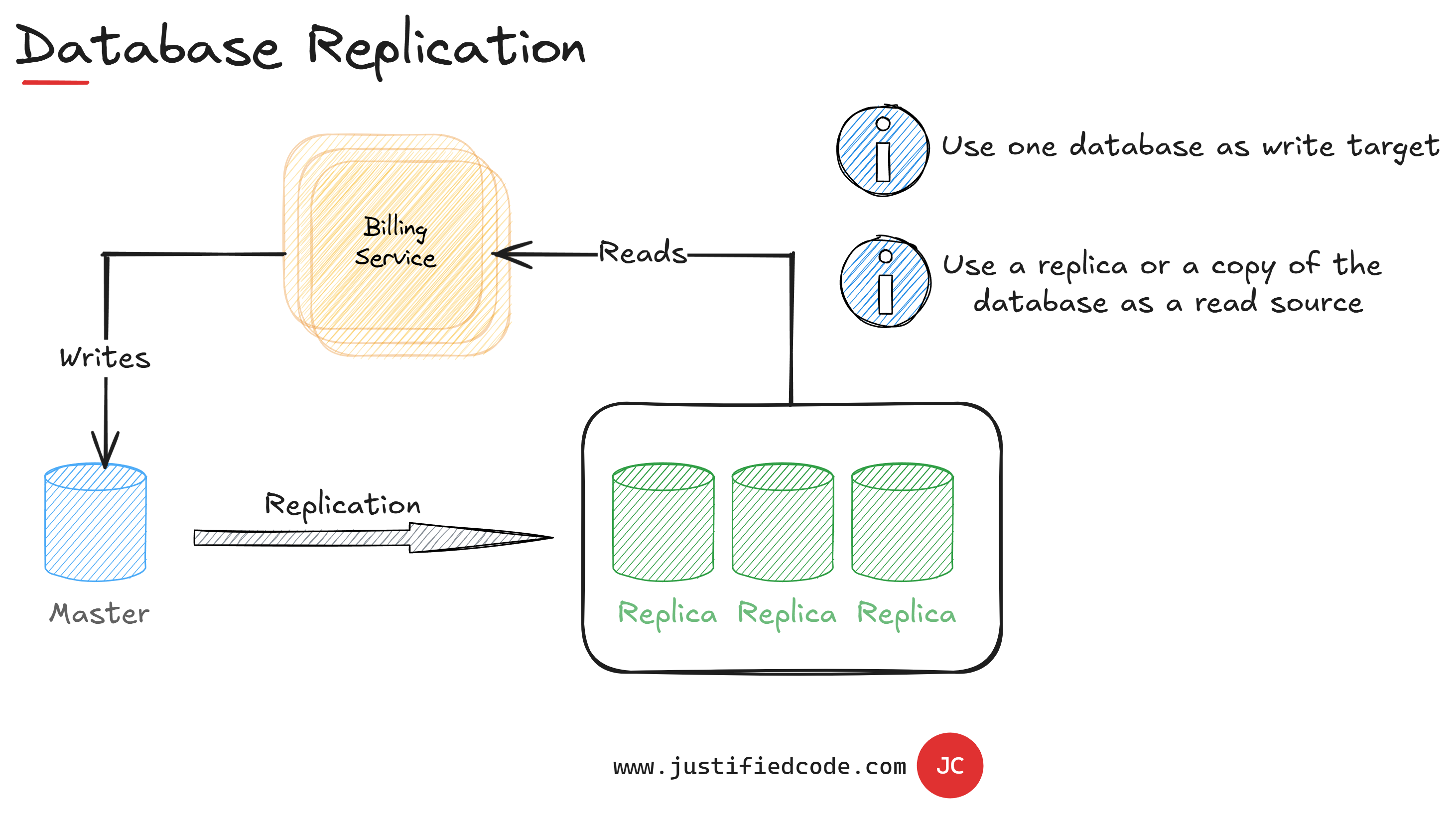 Our first approach for reducing database locking may be database replication. We can copy the master database to a number of other databases called replicas, very frequently.