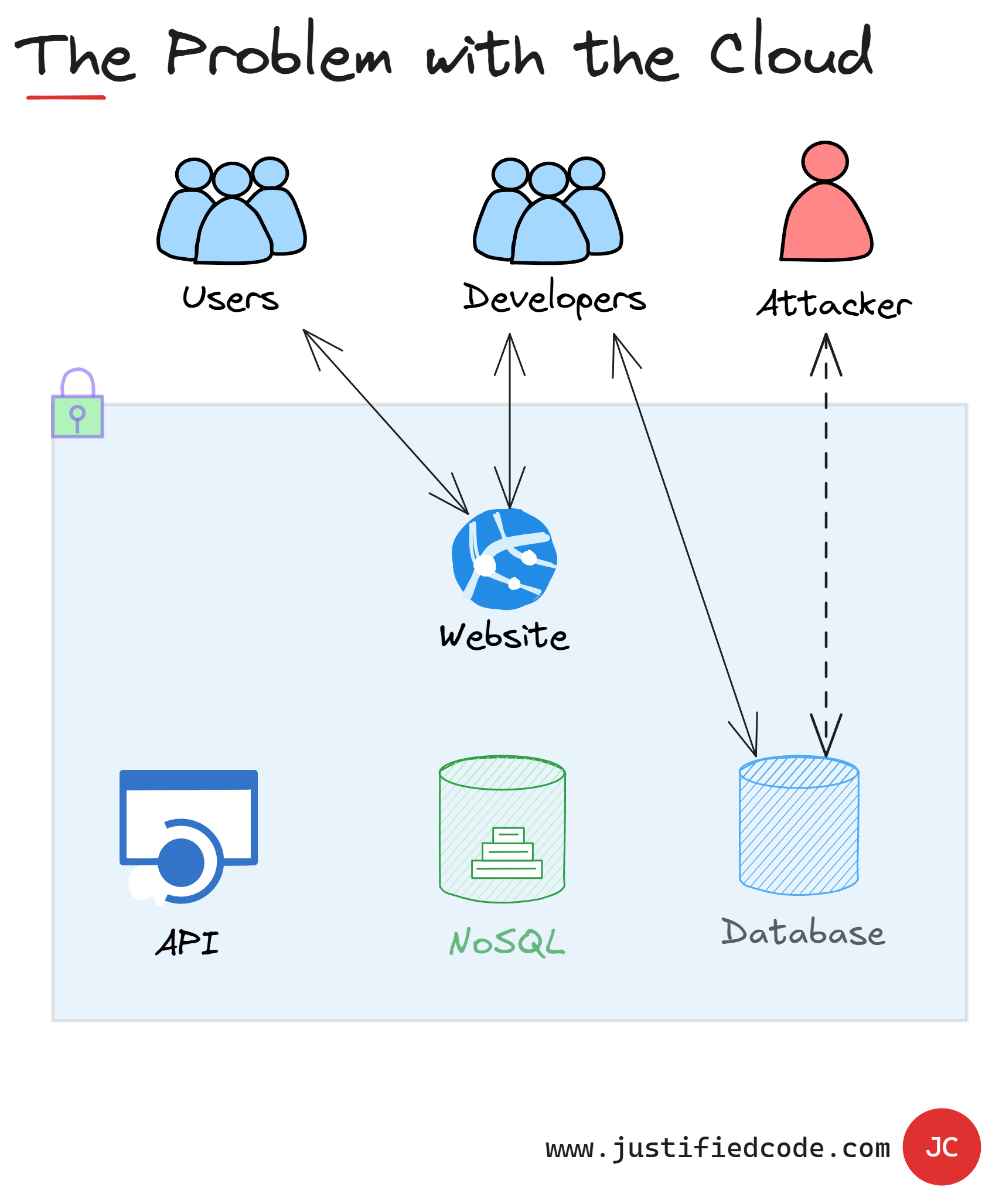 Modern systems place a public website in front of APIs, storage, and databases. In many cloud defaults, not only the site but also secondary services are internet-reachable.