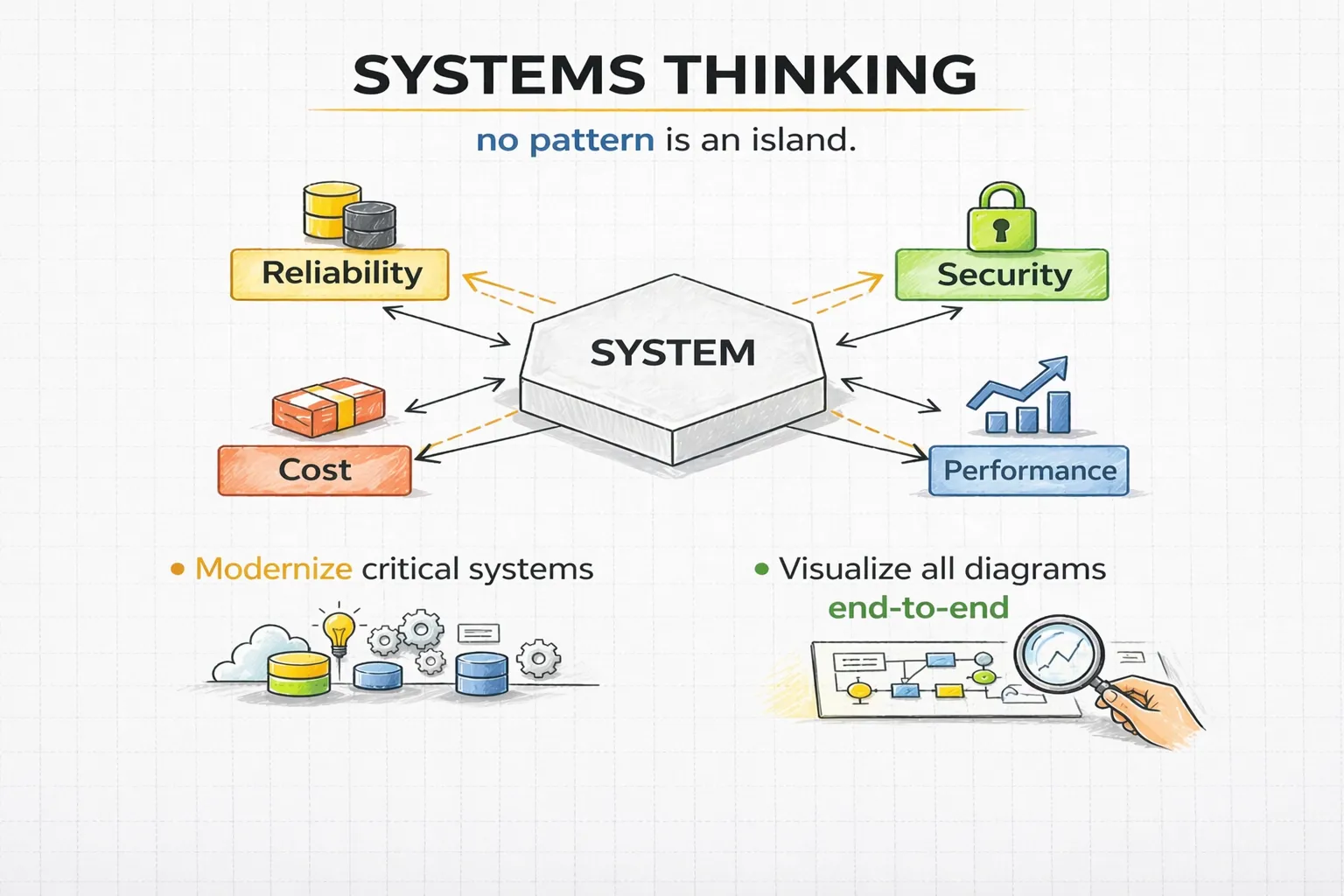 The solution is possible when you combine system design patterns across Reliability, Security, Cost, Performance, Data, and Operations.